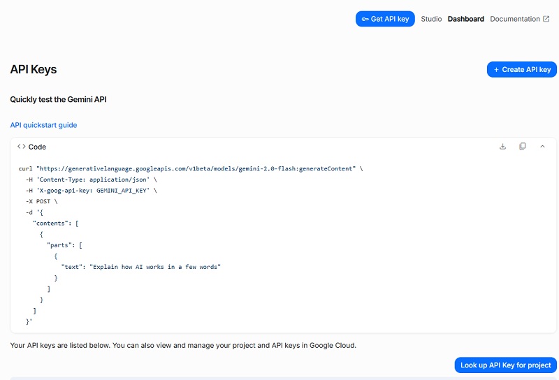 - Google Cloud Platform (GCP): Users can also create a Google Cloud account, create a project, enable the Gemini API in “APIs & Services,” and generate an API key from the “Credentials” section.